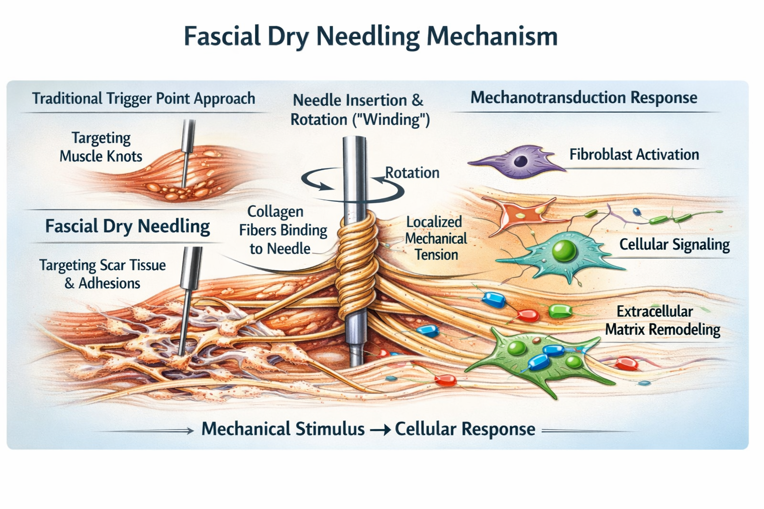 While high-quality clinical trials specific to fascial dry needling remain limited, these mechanobiological principles are well supported in basic science and connective tissue research.