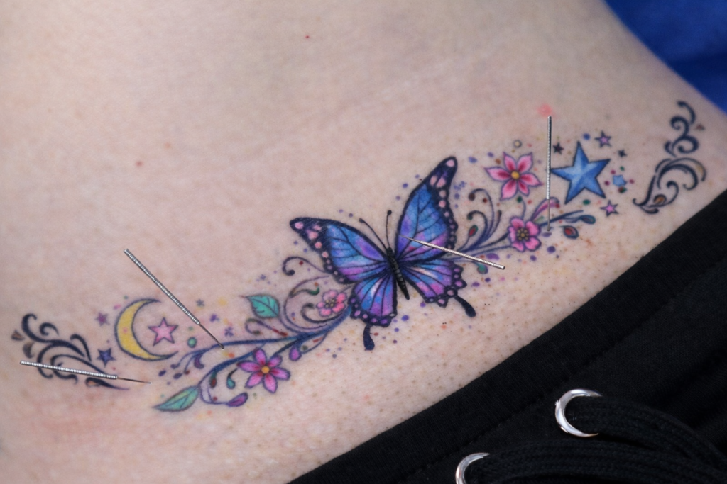 One of our students in a DN-2 course had a cesarean section scar (covered by a tattoo) with restricted fascial mobility. During fascial needling of her scar, it reproduced the familiar chronic hip pain she had since her daughter was born eight years ago.