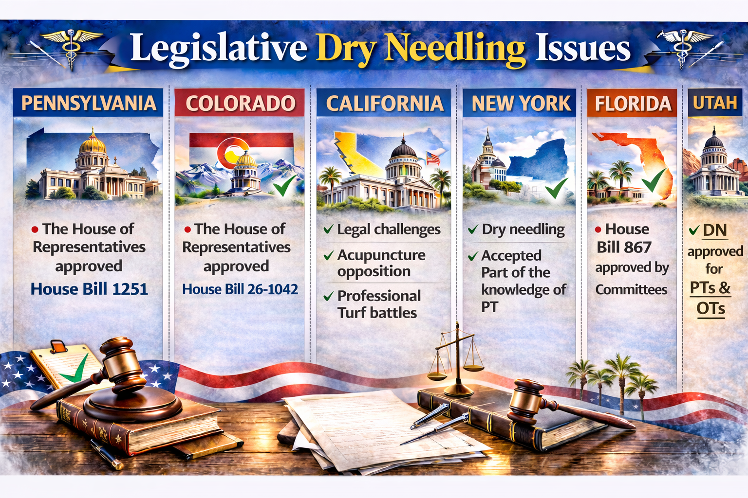 Hot off the Press: Florida House Bill 867 was approved by Committees of the House of Representatives and is scheduled to go for a full vote in the House on February 25. After both the Florida House and Senate approve the Bill, occupational therapists in Florida can use dry needling starting on July 1, 2026.